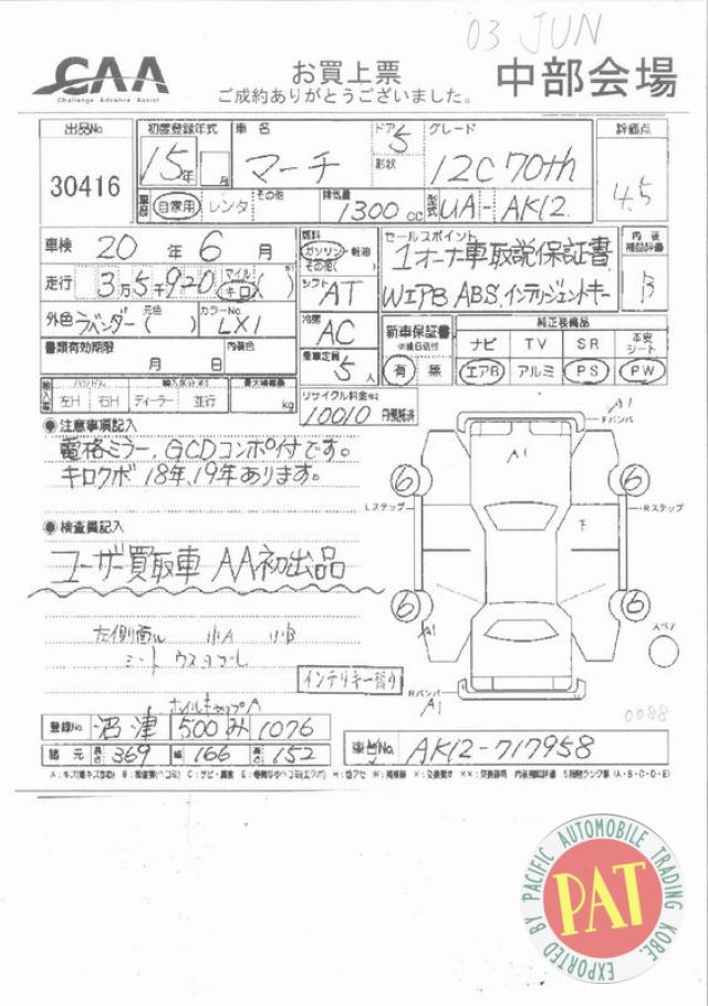 | Номер шасси (VIN): | AK12-717958 |