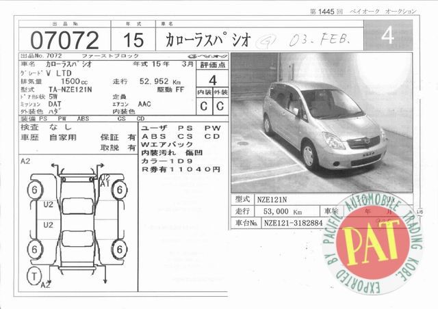 | Номер шасси (VIN): | NZE121-3182884 |