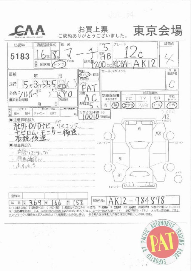 | Номер шасси (VIN): | AK12-784878 |